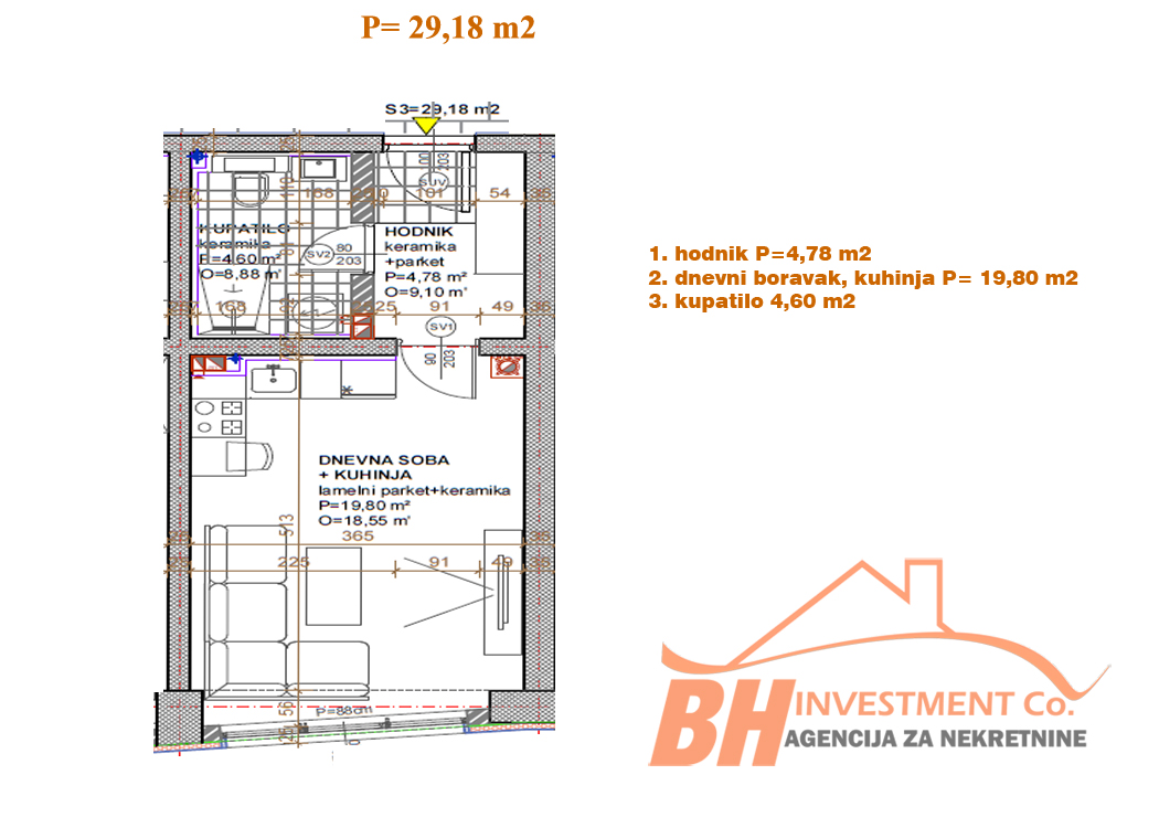 Prodaje se garsonjera površine 29,18 m2 u stambenom objektu vila “TCT Sjenjak” u izgradnji. Stan se sastoji od dnevnog boravka sa trpezarijom, kuhinje, kupatila i hodnika..